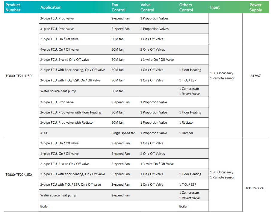T9800-TF20-1JS0 STAND-ALONE, MODBUS®, BACNET® FANCOIL THERMOSTATS